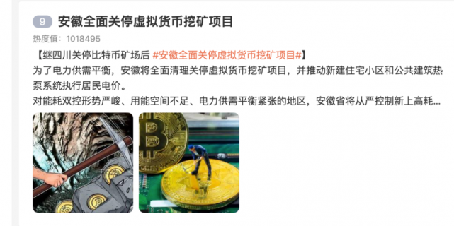 继青海、内蒙古、四川等地陆续宣布关停虚拟货币挖矿项目后。今日,安徽宣布,将从严控制新上高耗能、高耗电项目,合理布局有序建设数据中心,全面清理关停以各种名义建设的虚拟货币挖矿项目。...