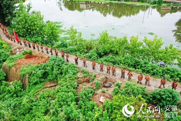 在芜湖无为,4年前大水的决口处再次遭遇险情,武警安徽总队第二前指抗洪抢险大队二中队100余名官兵闻“汛”而动,火速赶往凤凰颈大闸内河,经过4个小时的连续作战,加固加高堤坝300余米,有效化解圩堤险情。