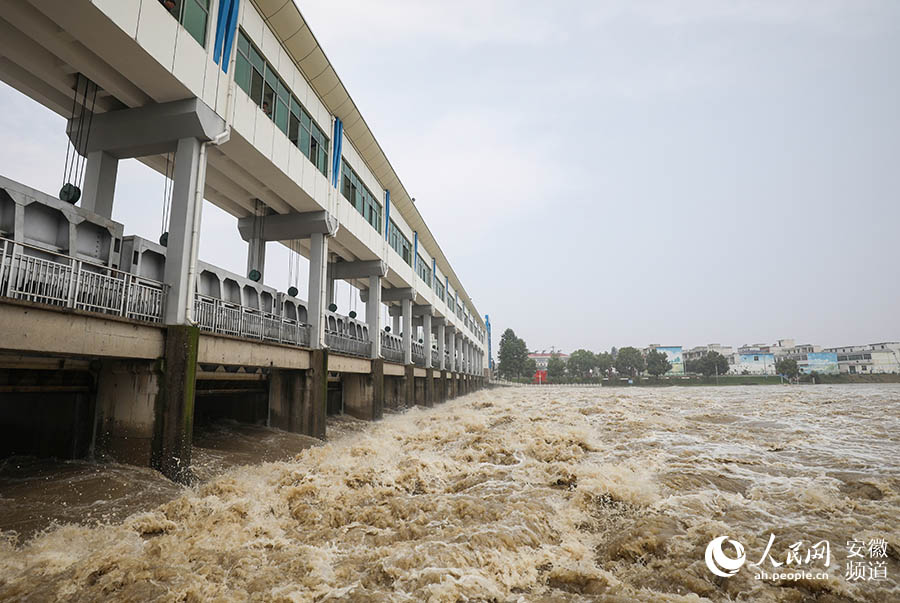 7月18日20时10分,按照安徽省防指命令,白湖东大圩开闸蓄洪,奔腾的洪水淹没内含6.5万亩良田的东大圩蓄洪区。