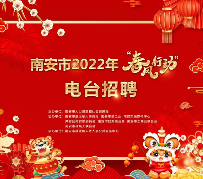 南安市2022年“春风行动”系列招聘活动为贯彻落实各级有关稳定就业保障企业用工政策,进一步推动促“六稳”“六保”追赶行动落到实处,集中帮扶农村富余劳动力、就业困难人员、脱贫家庭劳动力、退役军人、高校毕···...