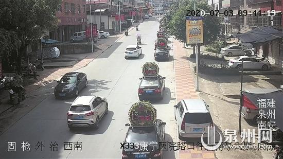 据介绍,南安一些地方办理丧事存在租赁私家车车队作为送葬车的现象,这些车辆车顶上违法安装花圈和LED屏幕,沿路行走,产生不良影响。“车顶安装花圈、LED屏幕都属于改装,成群结队沿路行驶,会造成不小的道路交通安全隐患。”南安交警大队相关负责人表示,这种行为一经查实,依法每次可处以200元的罚款,同时这种殡葬陋俗与“移风易俗、丧事简办”的理念相违背。