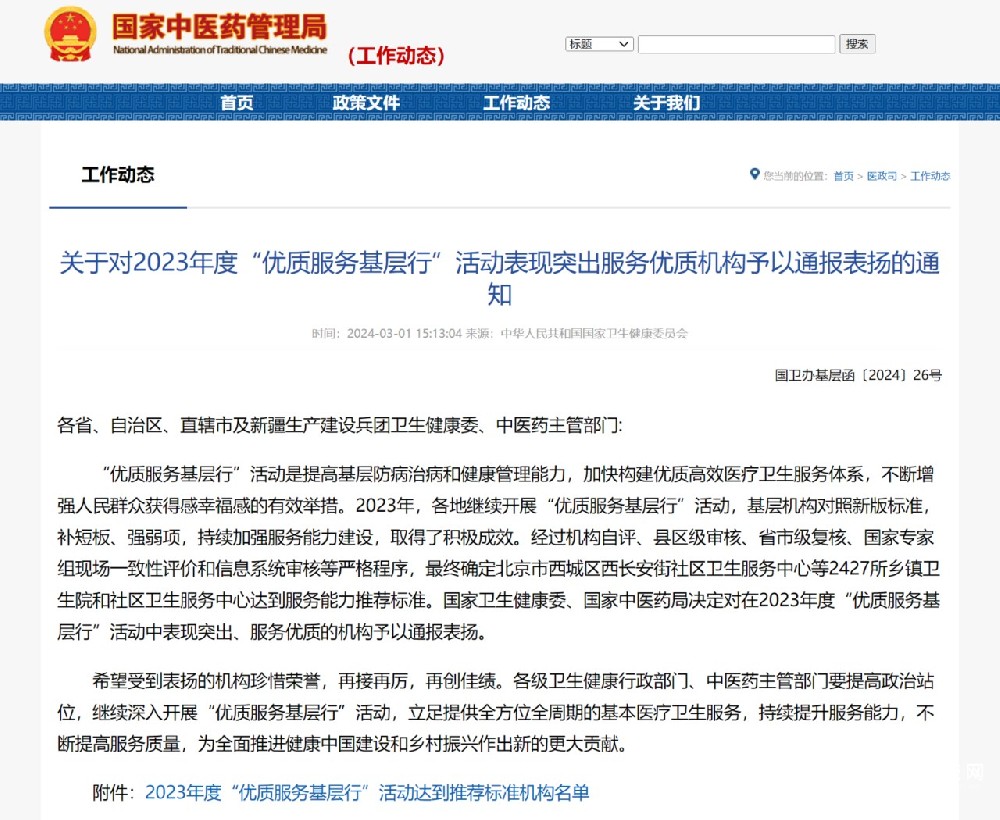 近日国家卫生健康委办公厅国家中医药管理局联合下发关于对2023年度“优质服务基层行”活动表现突出、服务优质的机构予以通报表扬的通知全省共108家基层医疗卫生机构上榜其中英都中心卫生院榜上有名!2023···...