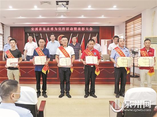 安溪县见义勇为宣传活动暨表彰大会日前在泉州安溪湖头镇召开。福建省见义勇为基金会会长傅镛堃和市、县两级相关领导出席大会,并为获评见义勇为的先进个人、先进集体颁发荣誉证书、奖金。
