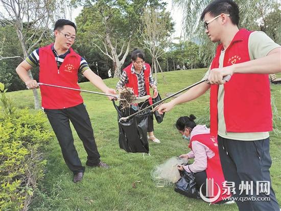 志愿者在西湖公园内清理垃圾 (志愿服务团队供图)