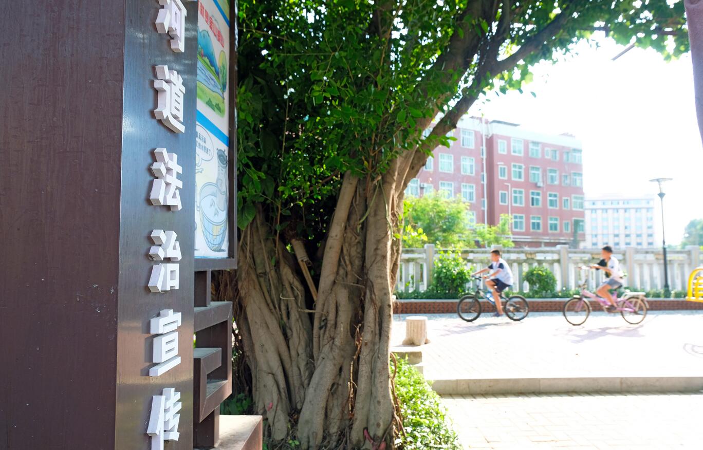 “什么是河长制?”“河长干什么?”“‘图说’河长制”……7月13日,记者来到宝盖镇郑厝村山雅沟旁的村口公园看到,绿阴下、路灯上、宣传栏,都是有关河长制工作宣传内容,甚至连河长制宣传漫画都上了变电箱。这里是石狮市河湖长制改造示范河湖段,也是我市推进“一镇(街)一河长制主题公园”建设的亮点之一。
