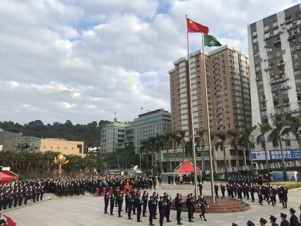 12月20日清晨,澳门特区政府隆重举行升旗仪式,庆祝澳门回归祖国21周年。8时整,澳门警察乐队奏响雄壮的《义勇军进行曲》,在澳门濠江中学的50名中学生领唱下,全场观礼人士面向旗杆肃立,伴随旋律高唱国歌。鲜艳的五星红旗和澳门特区区旗在众人的注视中,缓缓升到旗杆顶点,在晨曦中迎风招展。...